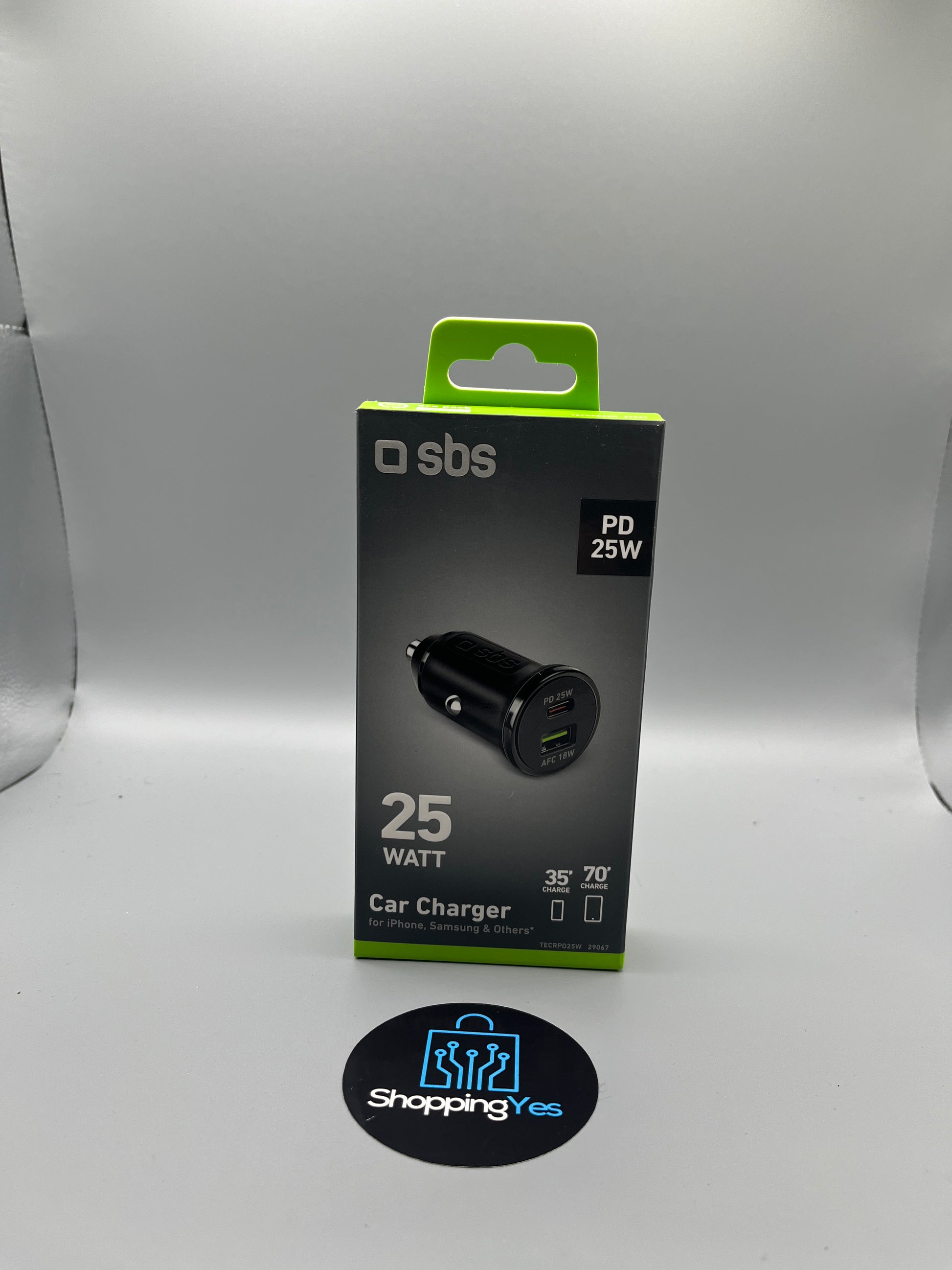 SBS Caricatore Auto 25W, USB-C Power Delivery + USB-A AFC 18W, Ricarica Rapida, Presa Accendisigari 12V